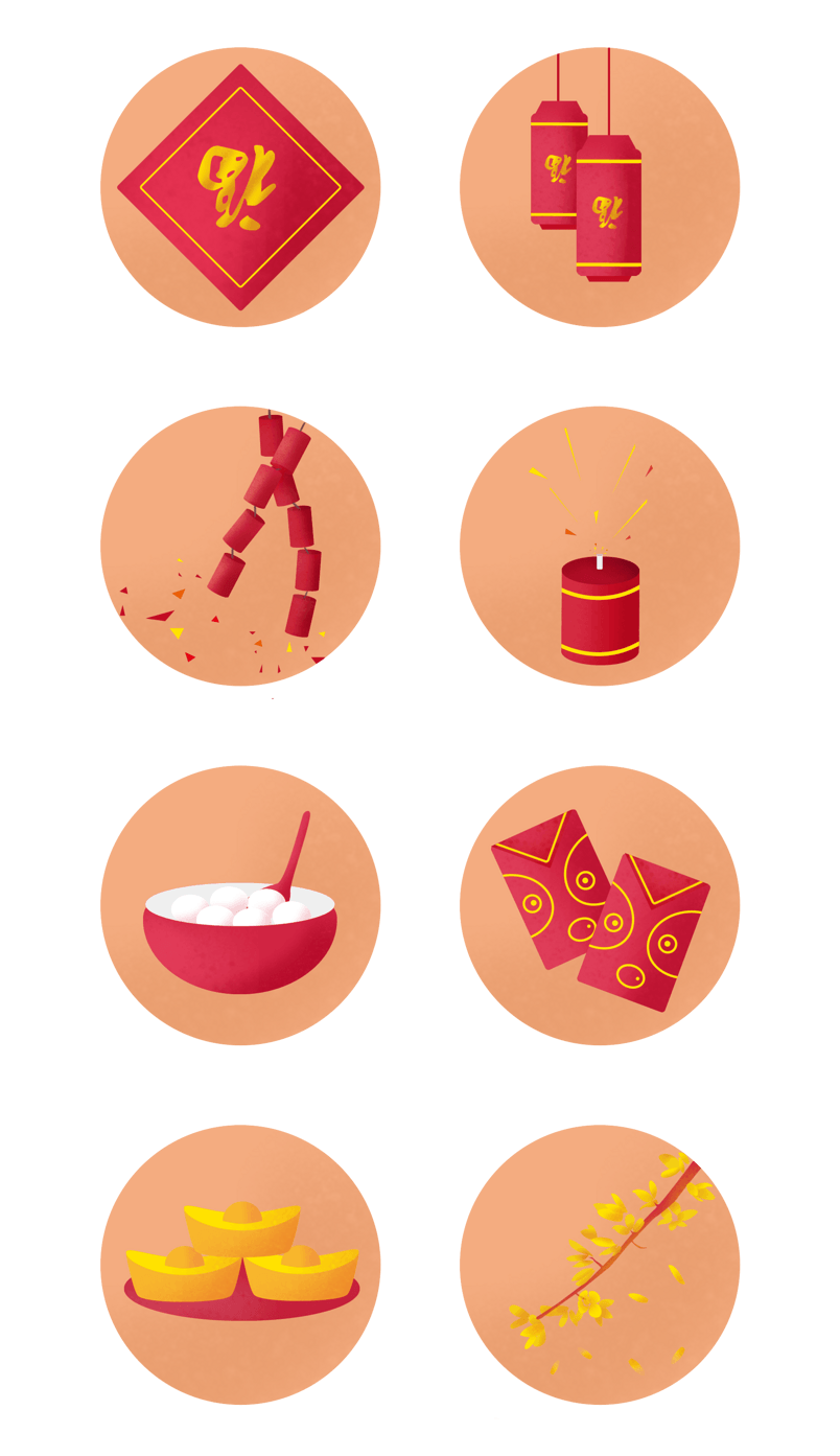 春节喜庆习俗系列圆形图标 png
