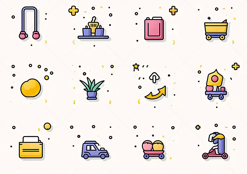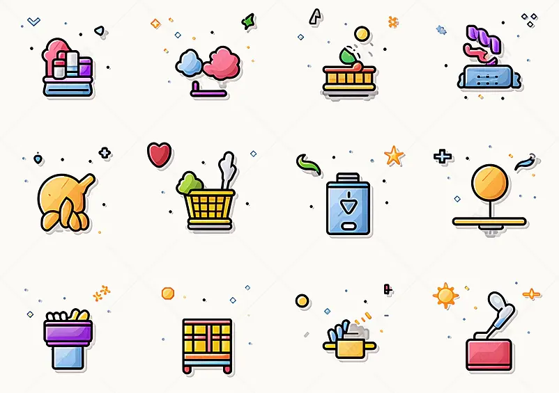 UI常用卡通风格小清新生活服务icon