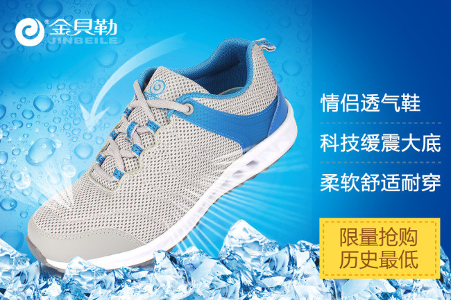 透气鞋聚划算主图 冰块 透气箭头 蓝色背景