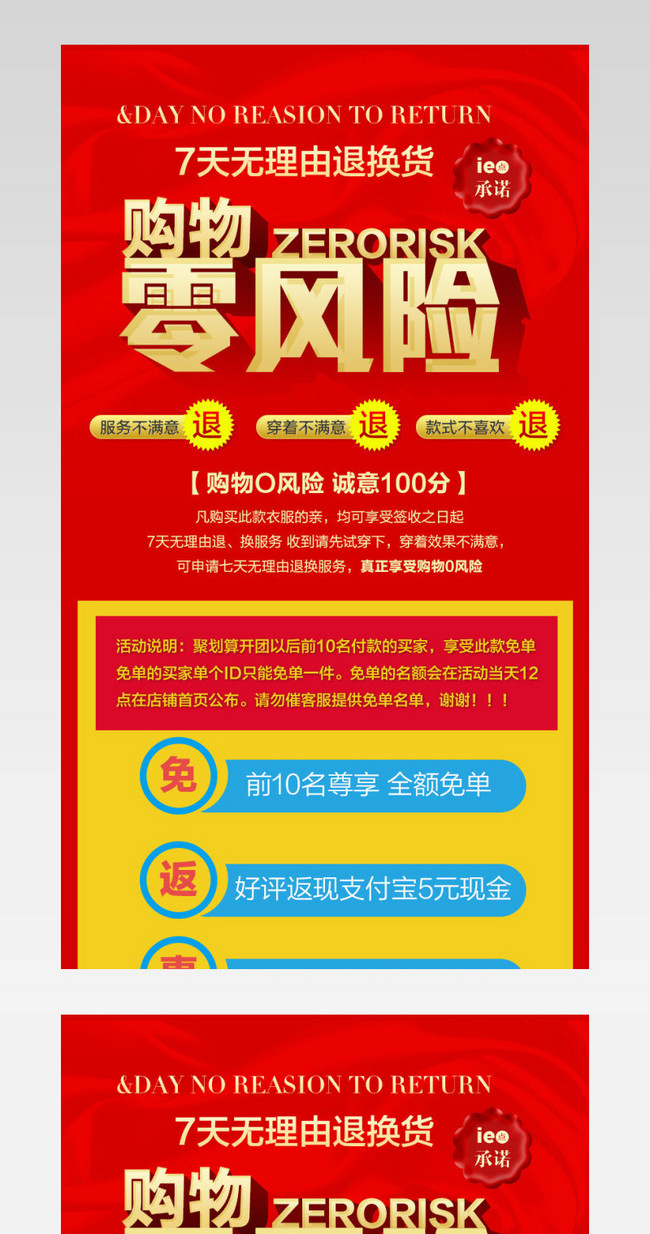 淘宝详情页 天猫详情页 购物零风险 7天无理由 聚划算详情页 淘抢购详情页 淘金币详情页 活动详情页 促销详情页 诚信100分 好评返现免单 30天无理由退换货
