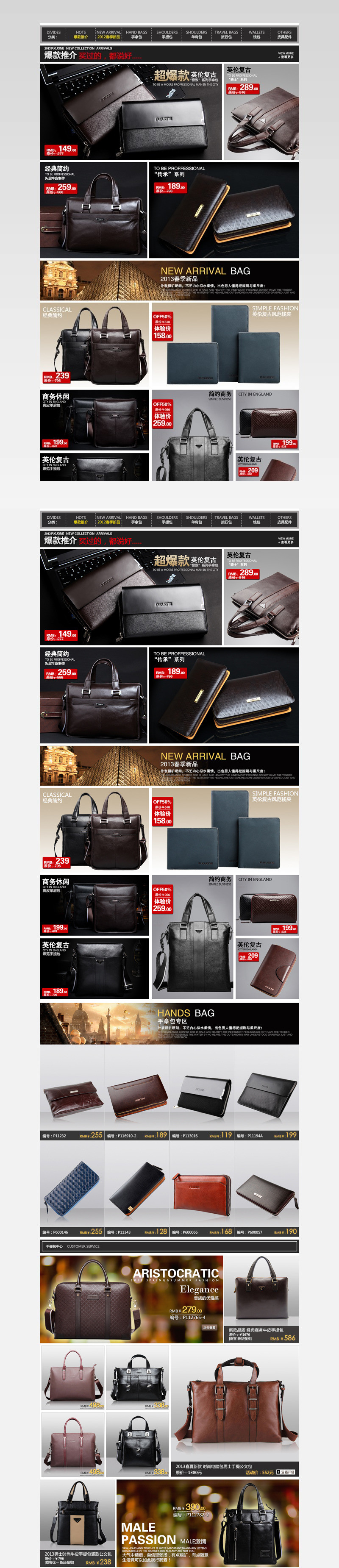 PSD文件 PSD分层文件 网页设计 网店设计 淘宝网店 淘宝首页设计 网店模板 皮包 男士皮包