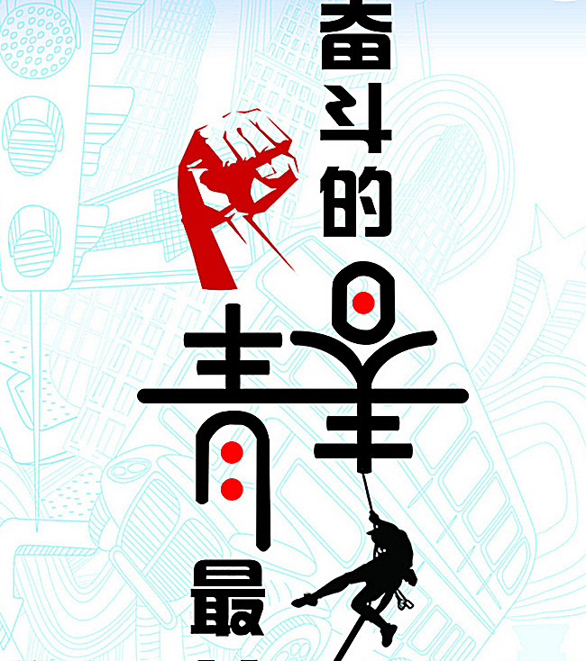蓝色背景 拳头矢量图 海报 字体设计 青春 设计 广告设计 海报设计 CDR