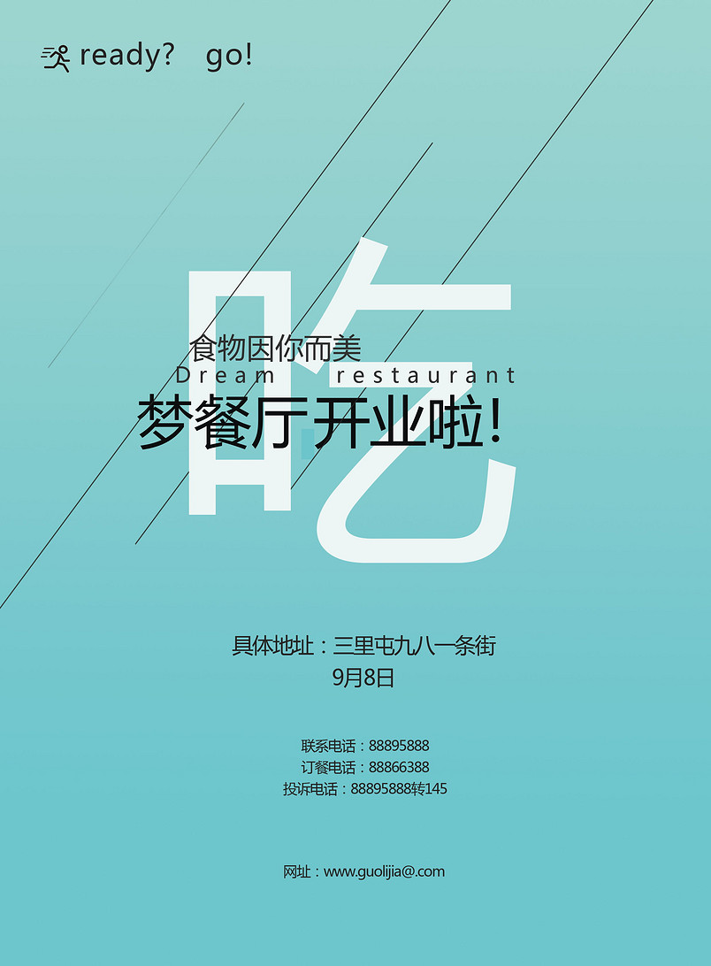 蓝色清新风格餐厅“吃”主题海报