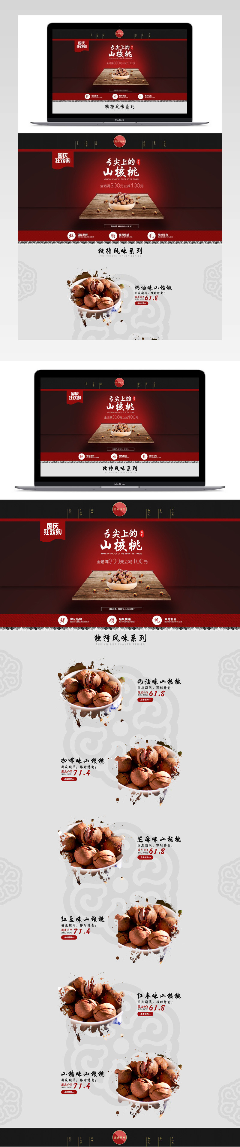 淘宝天猫国庆狂欢购零食类核桃复古风PC首页PSD模板