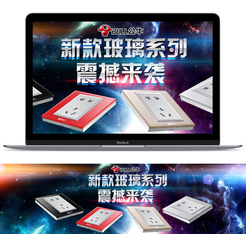 淘宝 天猫 时尚 酷炫 家装节 全屏海报 公牛插座 墙壁开关 玻璃系列 强势来袭
