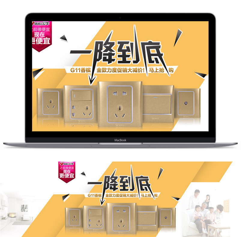 简约土豪金开关多孔电源插座全屏海报