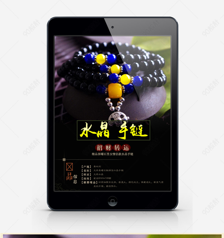 90设计提供典雅简约黑曜石水晶手链配饰淘宝详情PSD分层模板设计素材下载,高清PSD格式。【通用】多类目可用,产品、模特均可替换。【PSD】精细分层,贴好片。【设计】由90设计师独家设计。点击右侧免费下载按钮可进行典雅简约黑曜石水晶手链配饰淘宝详情PSD分层模板淘宝设计素材高速下载。