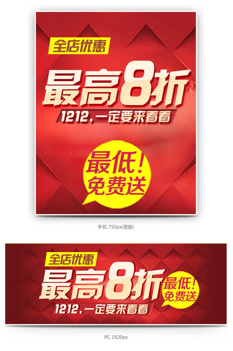 淘宝 双十二 促销 优惠活动 素材 折扣 免费送 喜庆 海报素材 活动页素材