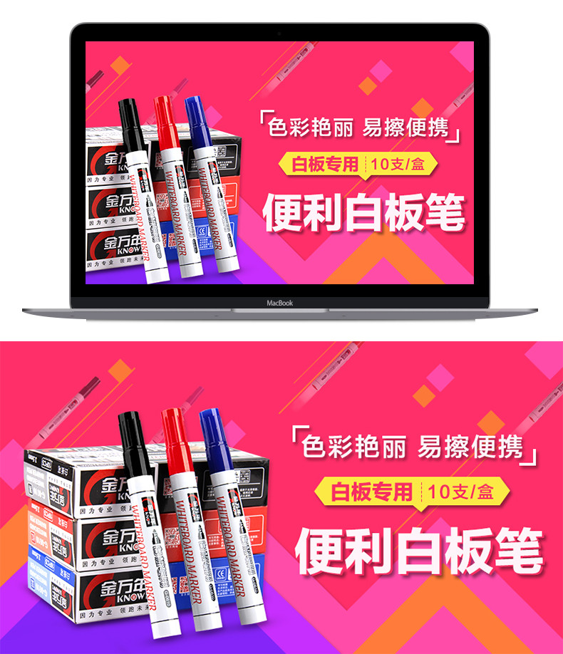 淘宝 紫色 时尚 酷炫 电脑办公 全屏海报 书写工具 麦克笔 记号笔