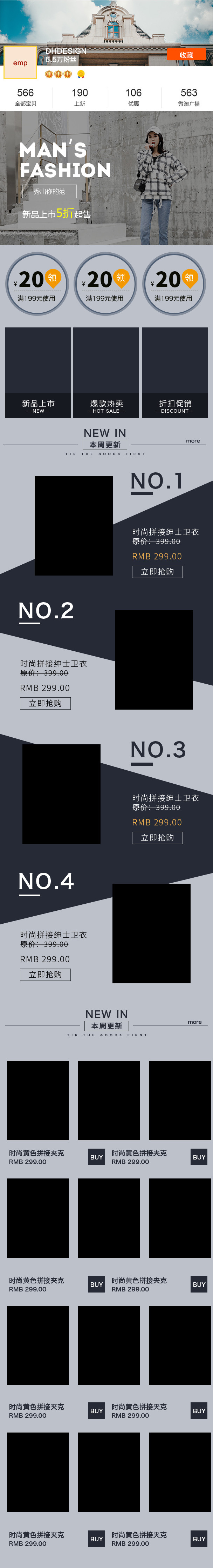 沉稳时尚风男装无线端首页PSD模板