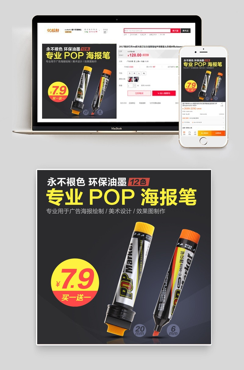 淘宝天猫马克笔美术笔直通车图片PSD模板
