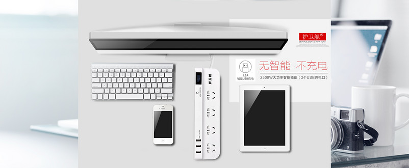 灰白色背景排插海报 插座海报 智能插座 家用排插 电脑 键盘 排插海报 插座海报 智能插座1920首页海报