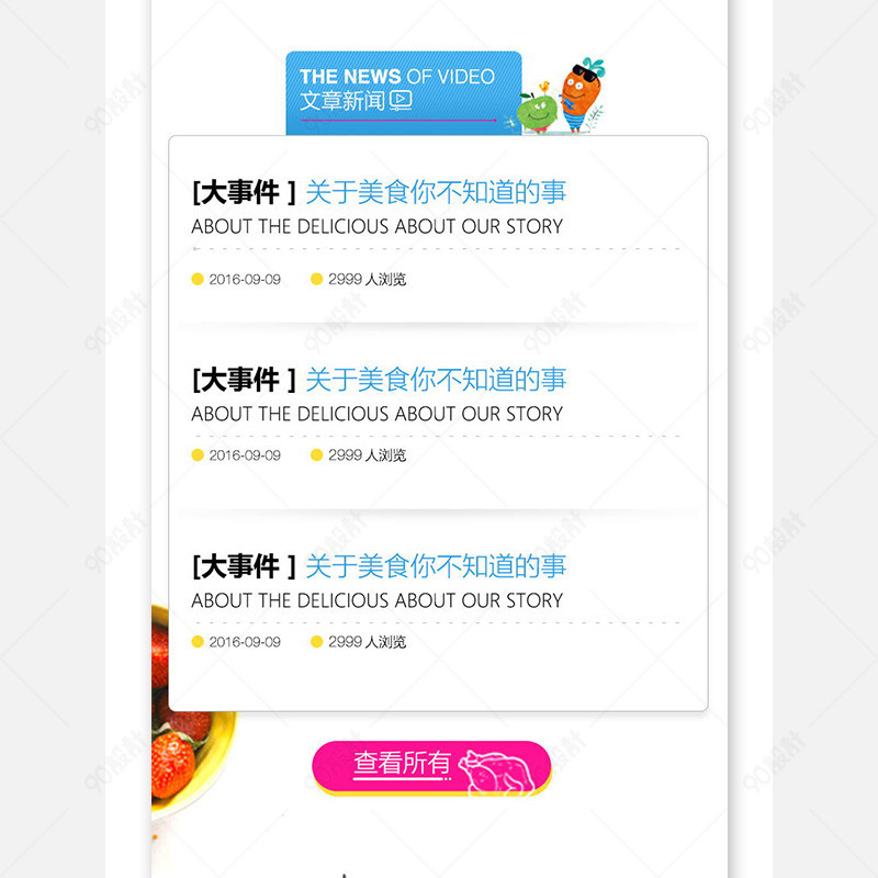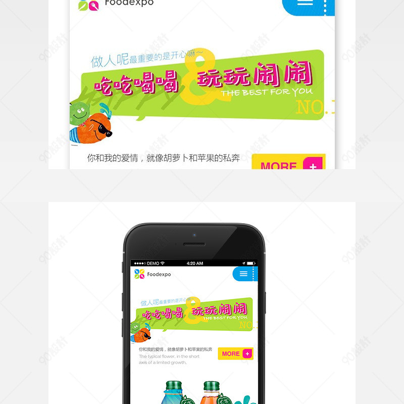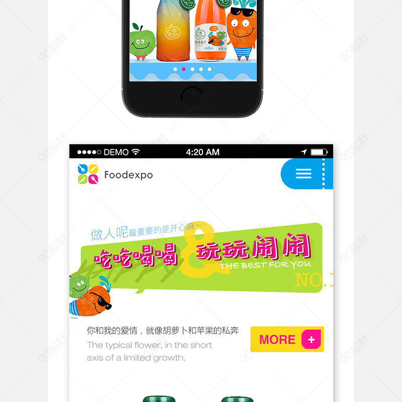 90设计提供简约卡通食物手机端首页设计素材下载,高清PSD格式。【通用】多类目可用,产品、模特均可替换。【PSD】精细分层,贴好片。【设计】由90设计师独家设计。点击右侧免费下载按钮可进行简约卡通食物手机端首页淘宝设计素材高速下载。
