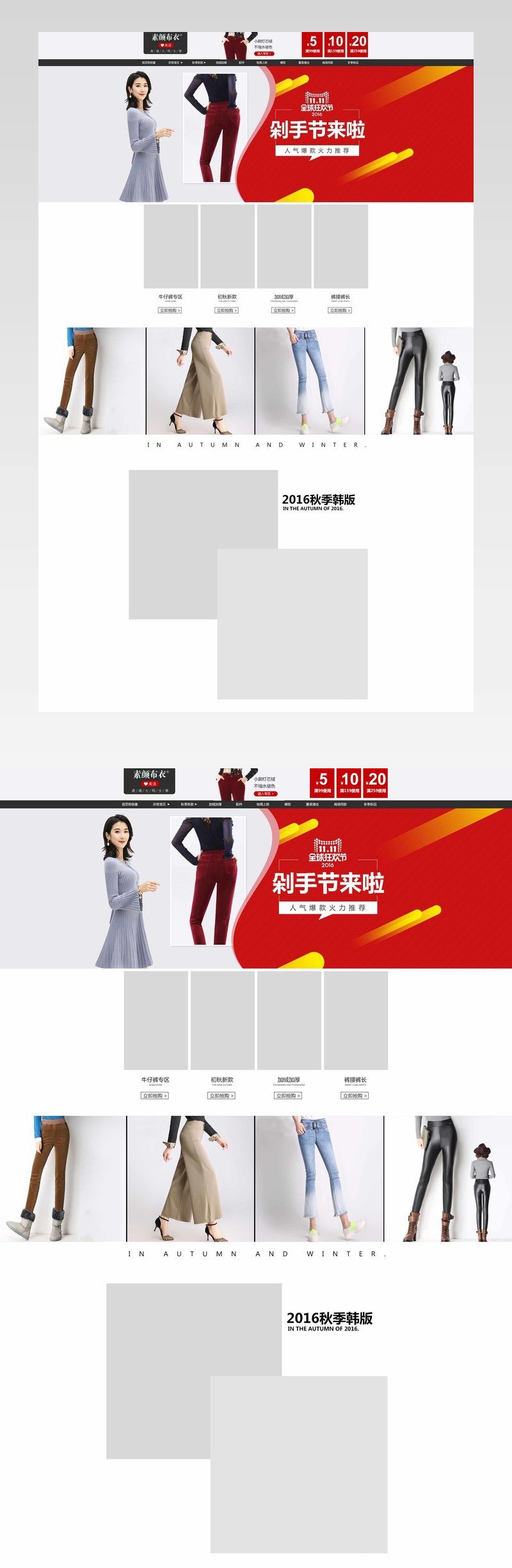PC端首页 店铺首页 女装首页 店铺装修 简约风 欧美风 时尚女装 双11 全球狂欢节 女装 连衣裙 牛仔裤 休闲裤