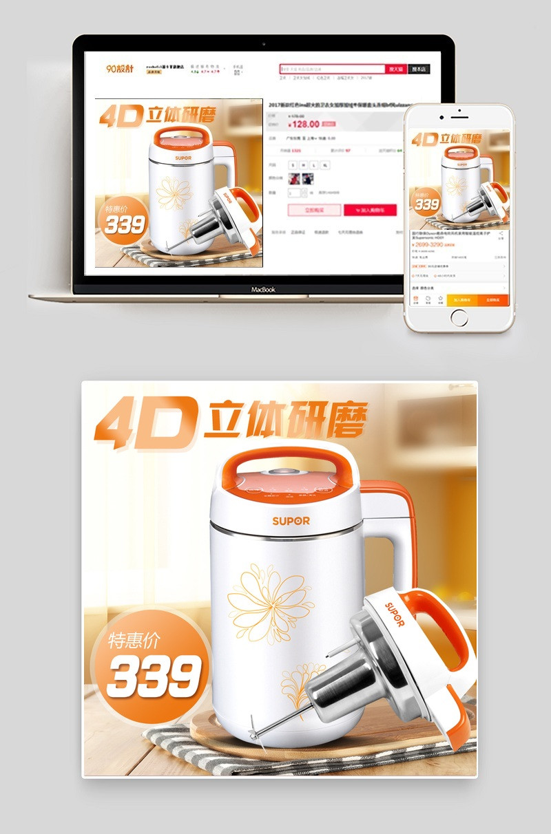 电器主图 家电主图 榨汁机主图 豆浆机主图 榨汁 省电 易清洗 动力超强 白色
