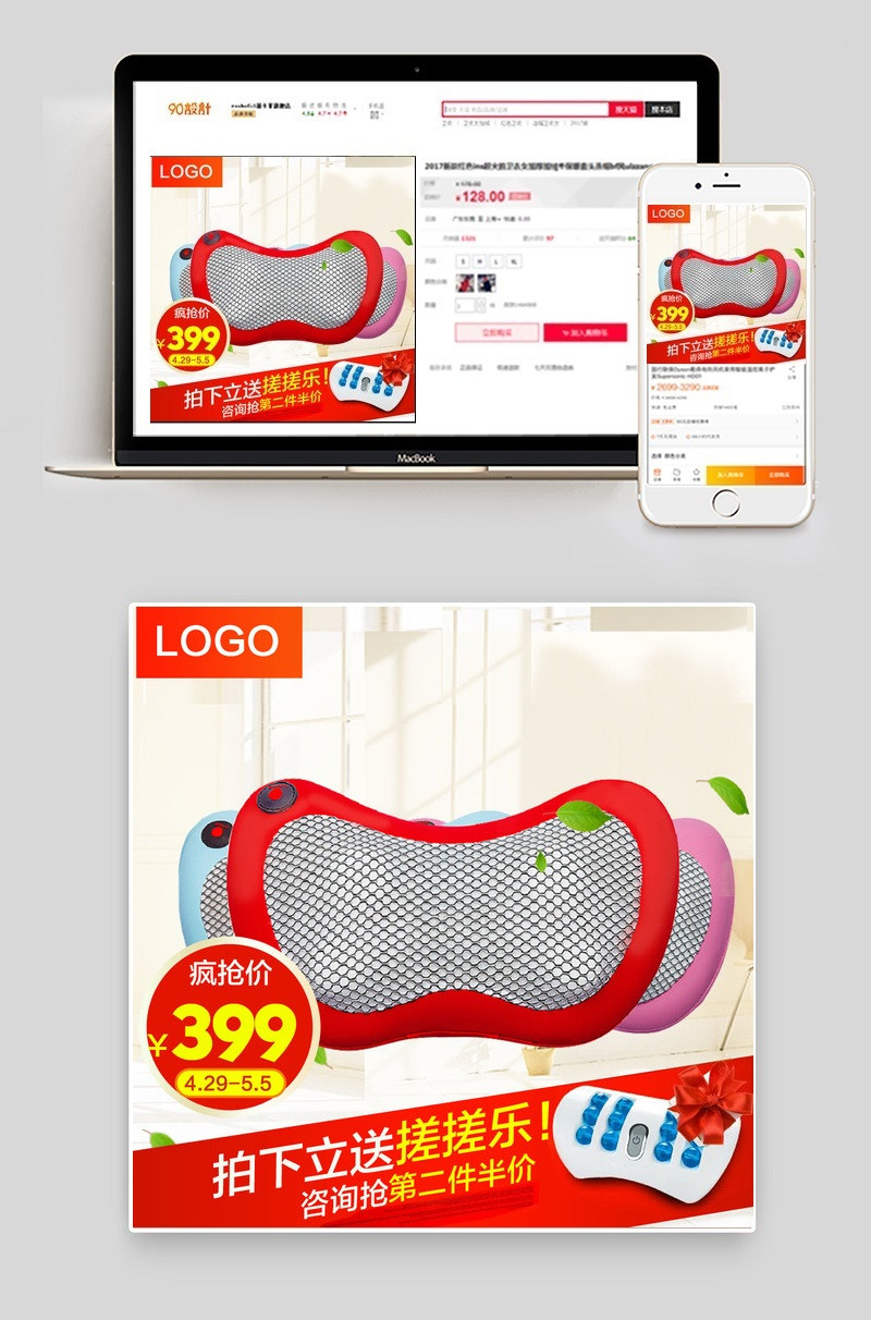 90设计提供淘宝网按摩枕直通车设计素材下载,高清PSD格式。【通用】多类目可用,产品、模特均可替换。【PSD】精细分层,贴好片。【设计】由90设计师独家设计。点击右侧免费下载按钮可进行淘宝网按摩枕直通车淘宝设计素材高速下载。
