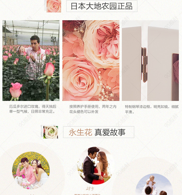 90设计提供浪漫温馨永恒花相框永生花详情页设计素材下载,高清PSD格式。【通用】多类目可用,产品、模特均可替换。【PSD】精细分层,贴好片。【设计】由90设计师独家设计。点击右侧免费下载按钮可进行浪漫温馨永恒花相框永生花详情页淘宝设计素材高速下载。