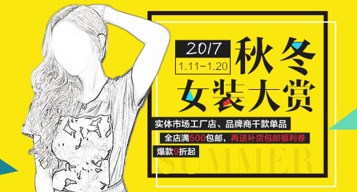 黄色背景 几何元素 秋冬女装大赏 包邮 通用模板 psd模板 简约 唯美 时尚 女装 潮流