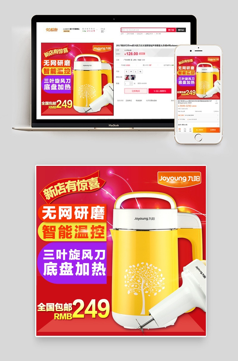 豆浆机 生活电器 家电 主图 直通车 榨汁机 酸奶机 面包机 红色背景 时尚 大气 光效 包邮