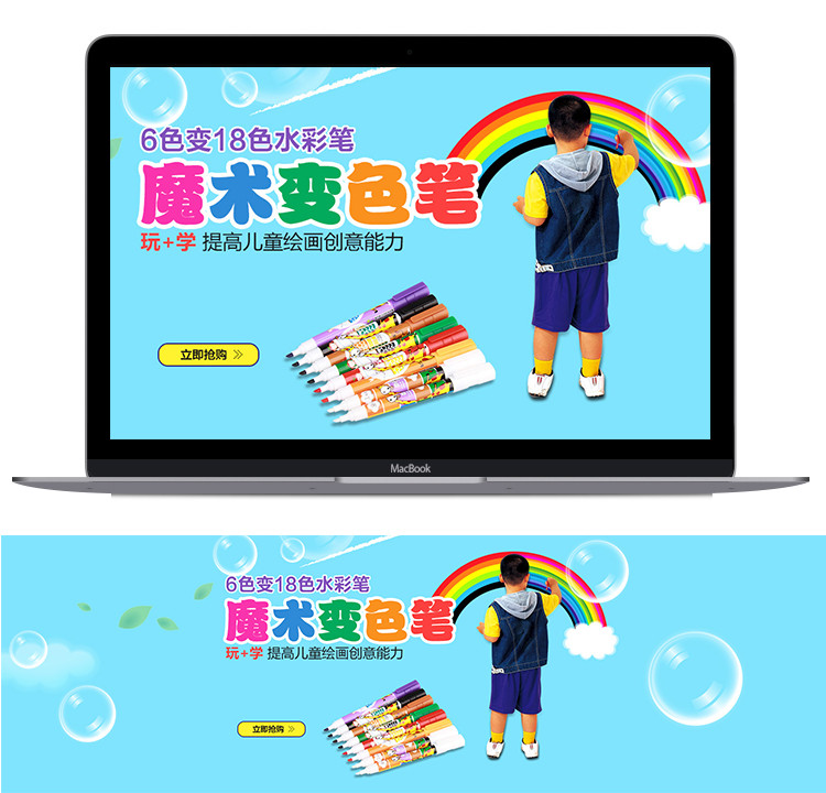 淘宝蓝色系卡通魔术笔全屏海报psd模板