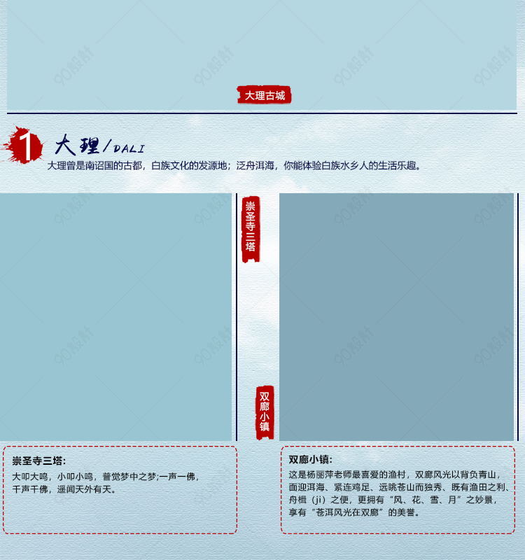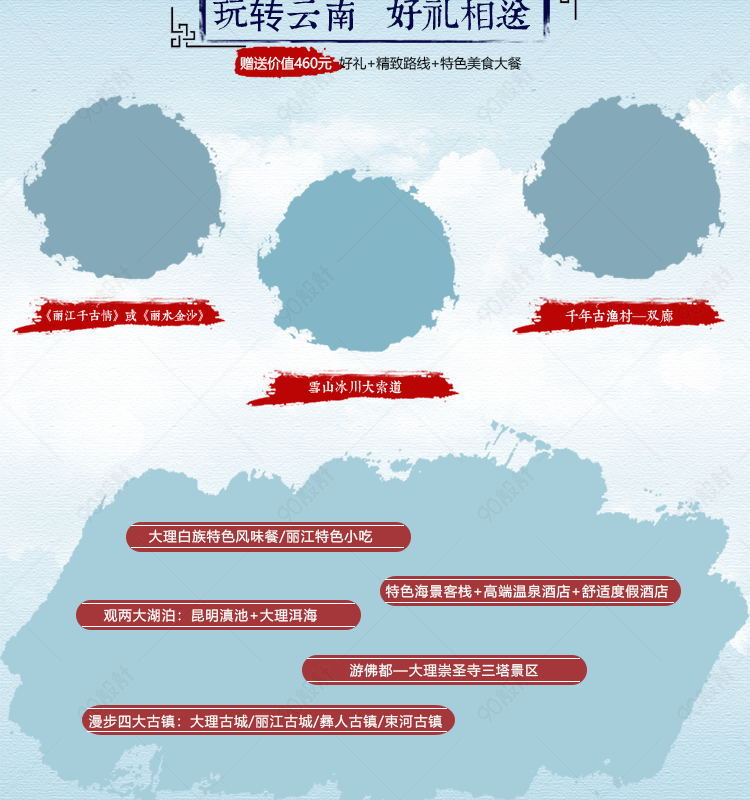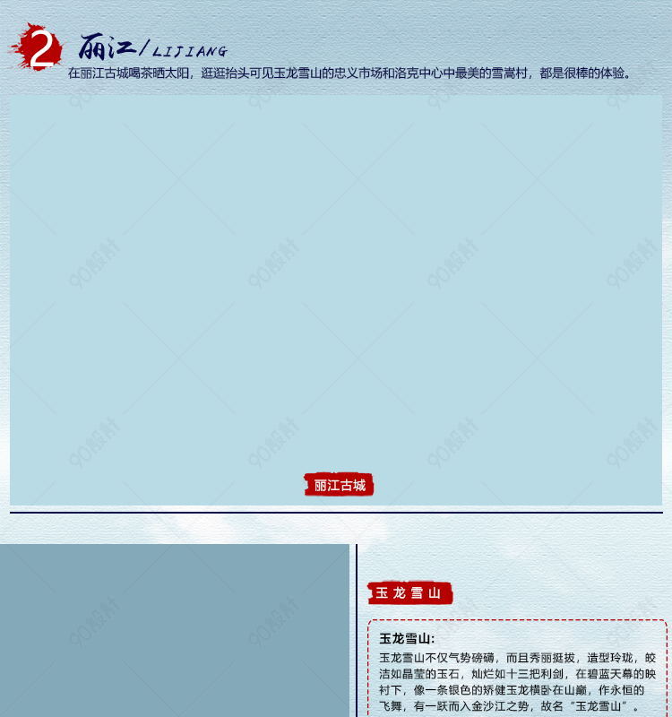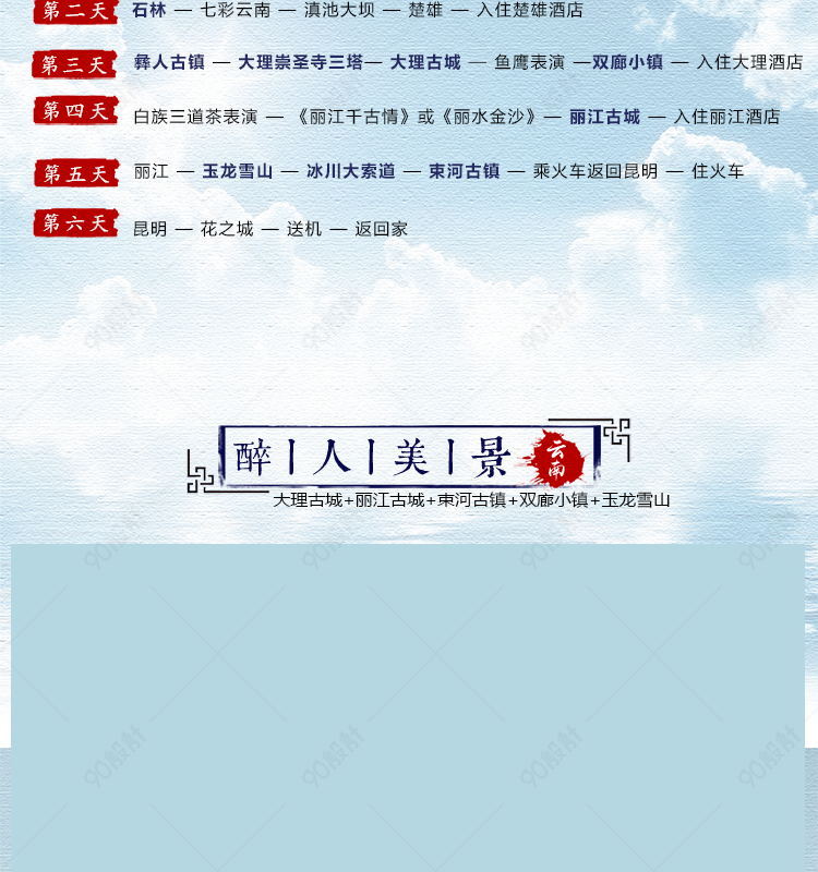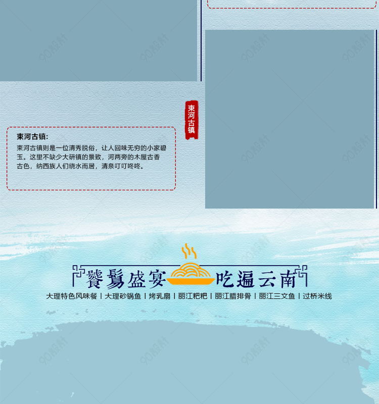 90设计提供淘宝中国风云南旅游详情页psd模板设计素材下载,高清PSD格式。【通用】多类目可用,产品、模特均可替换。【PSD】精细分层,贴好片。【设计】由90设计师独家设计。点击右侧免费下载按钮可进行淘宝中国风云南旅游详情页psd模板淘宝设计素材高速下载。