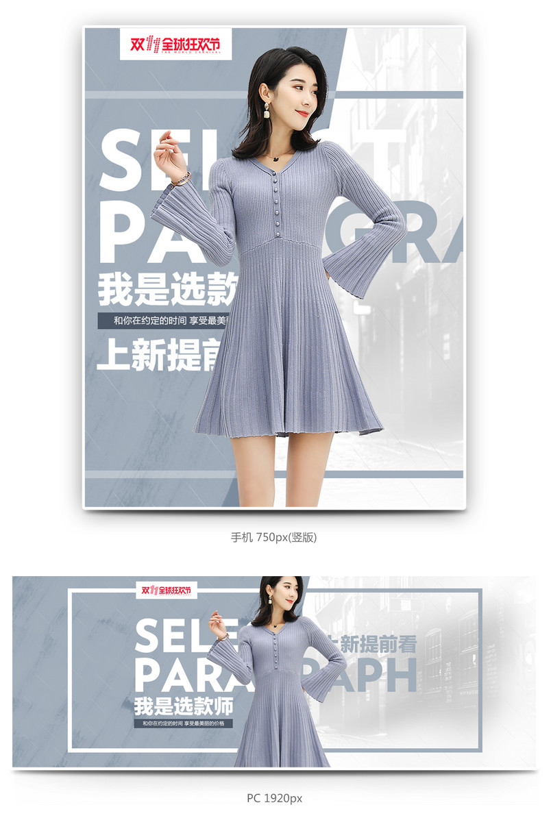 淘宝 双11 简约风 女装海报 双11海报 全屏海报 活动海报 电脑端海报 PSD