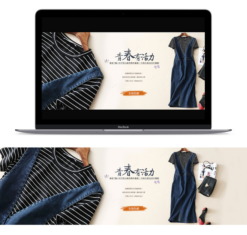全屏海报 banner 海报 女装海报 欧美风 简约风 女装 连衣裙 T恤 牛仔裙