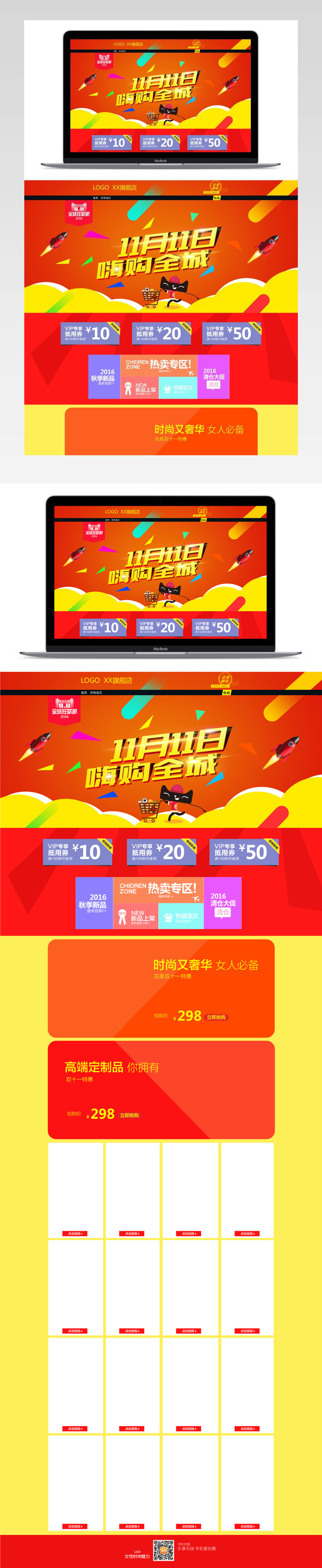 90设计提供喜庆时尚风格双11双十一首页装修psd模板设计素材下载,高清PSD格式。【通用】多类目可用,产品、模特均可替换。【PSD】精细分层,贴好片。【设计】由90设计师独家设计。点击右侧免费下载按钮可进行喜庆时尚风格双11双十一首页装修psd模板淘宝设计素材高速下载。