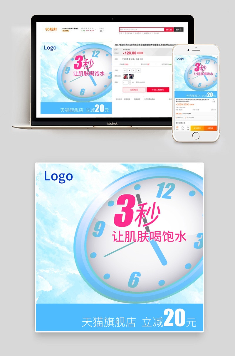 蓝色天空背景 主图直通车psd 淘宝 天猫 蓝色 水润 补水 保湿 化妆品 护肤品 美妆 直通车 主图 PSD 模板 素材