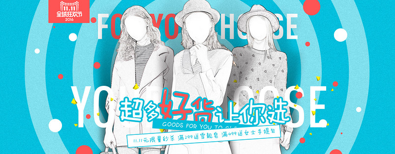 全屏海报 banner 海报 女装海报 唯美风 简约风 蓝色背景 双11 全球狂欢节 节日海报 活动海报 促销海报 女装 针织衫 雪纺衫 牛仔裤
