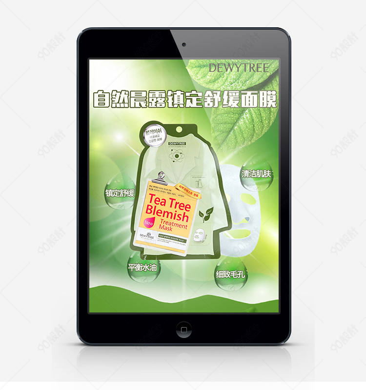 绿色主题背景 详情页psd 绿色面膜包装详情 面膜素材 淘宝详情页素材 绿色背景 镇静舒缓面膜 自然晨露 树叶素材 面膜护理素材 肌肤护理素材
