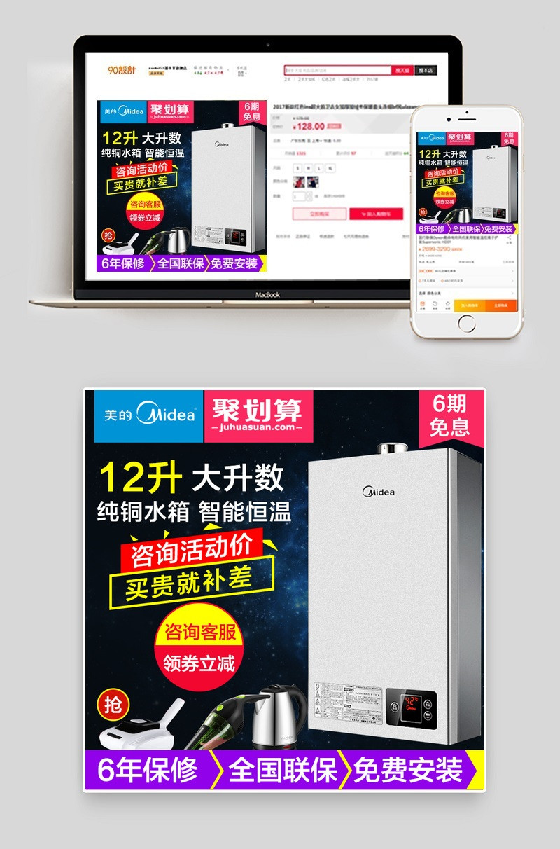 淘宝天猫 热水器直通车 热水器主图 热水器 主图 大图 直通车 黑色直通车 节日直通车 psd模板 直通车
