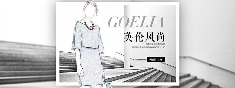 全屏海报 banner 海报 女装海报 促销海报 英伦风 夏季女装 欧美风 简约风 女装 套装 连衣裙 雪纺衫 两件套 时尚 简约 冷淡系列 psd模板