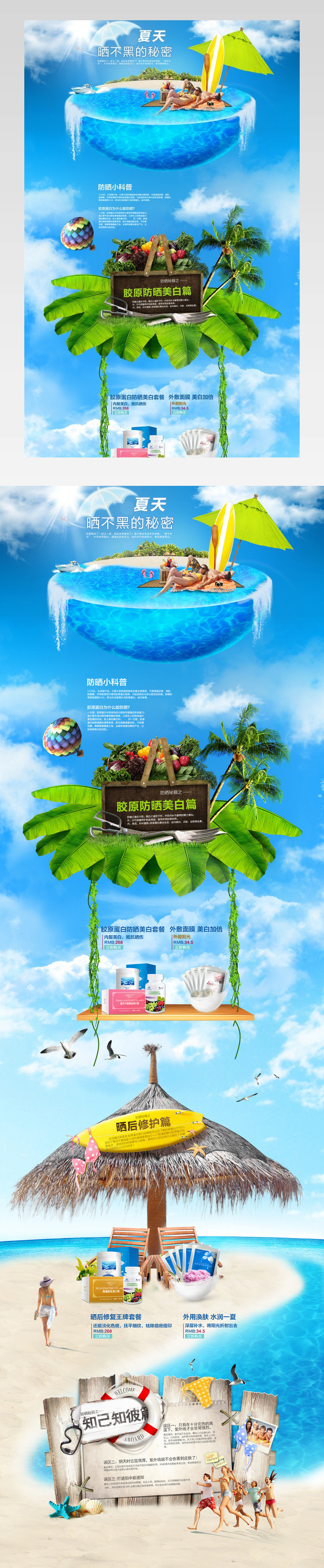 90设计提供夏季海洋风医药保健防晒首页psd模板设计素材下载,高清PSD格式。【通用】多类目可用,产品、模特均可替换。【PSD】精细分层,贴好片。【设计】由90设计师独家设计。点击右侧免费下载按钮可进行夏季海洋风医药保健防晒首页psd模板淘宝设计素材高速下载。