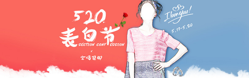 全屏海报 banner 海报 女装海报 简约风 清新风 女装 T恤 520 表白节 雪纺衫 卫衣