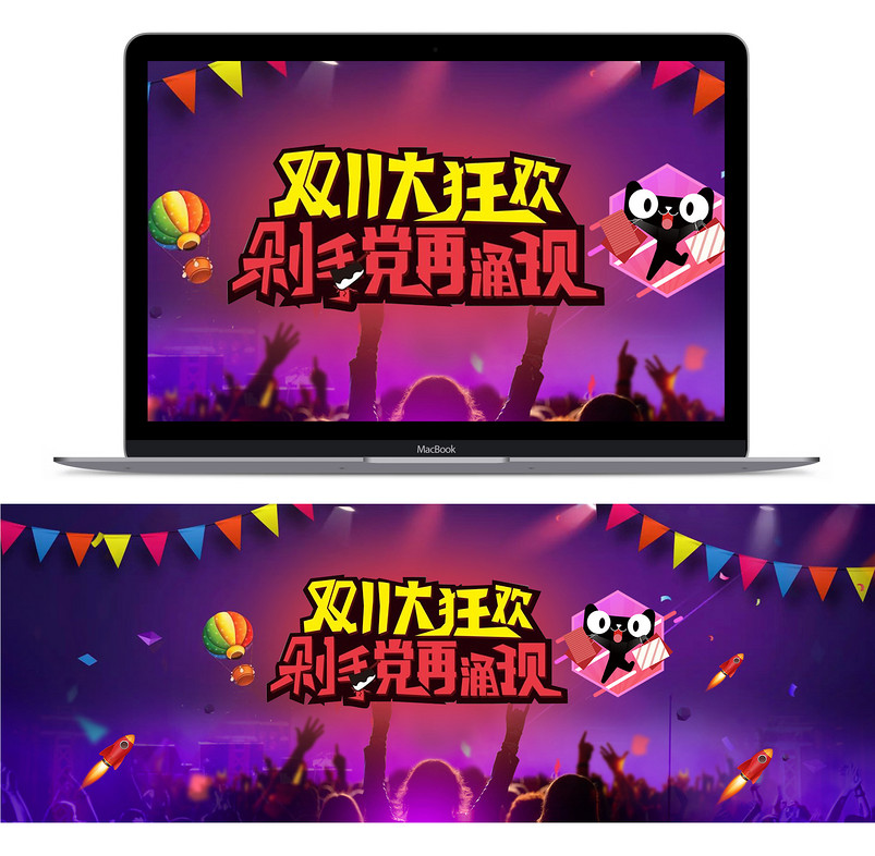 炫酷风双11女装促销全屏海报PSD模版