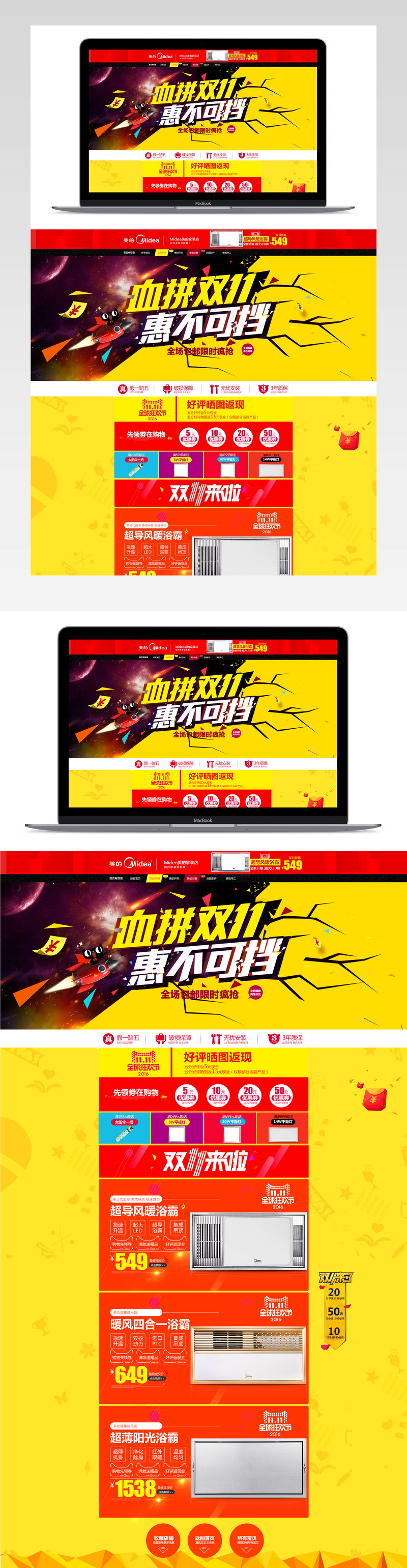 双十一血拼黄色炫酷家用电器首页模板