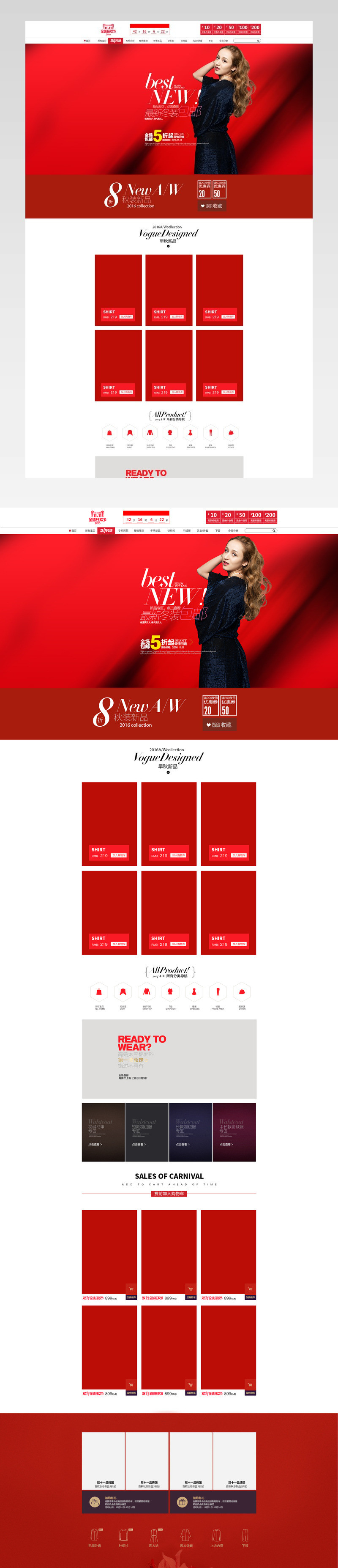 PC端首页 店铺首页 女装首页 店铺装修 双11 红色背景 冬季女装 女装 连衣裙 雪纺衫 针织衫
