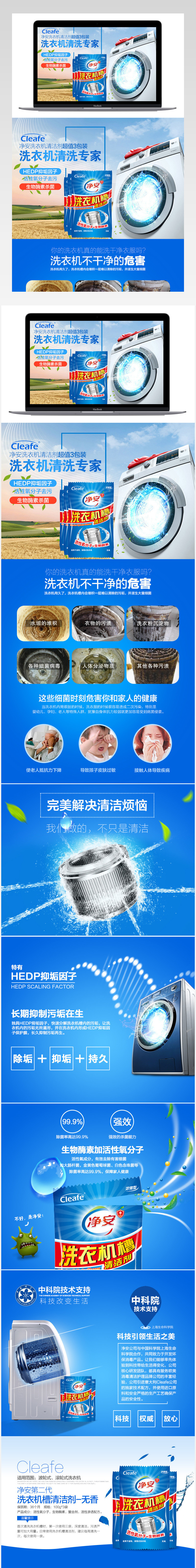蓝色系 洗衣机 清洁剂 天猫 详情页PSD 简约时尚 新颖别致 收纳清洁详情页 收纳物品详情页 清洁物品详情页 优惠好货 清洁剂 清洁水 清洁膏