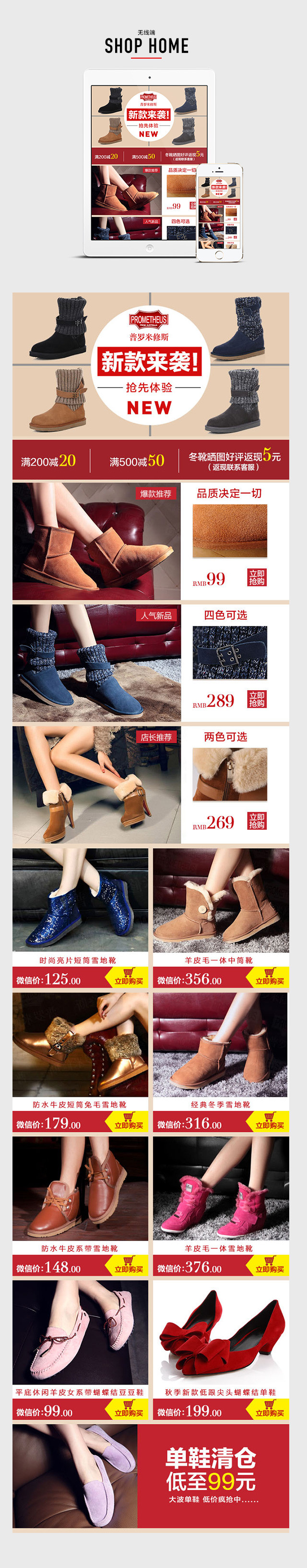 无线端首页 店铺首页 首页装修 简约风 双11 手机端 雪地靴 平底鞋 休闲鞋
