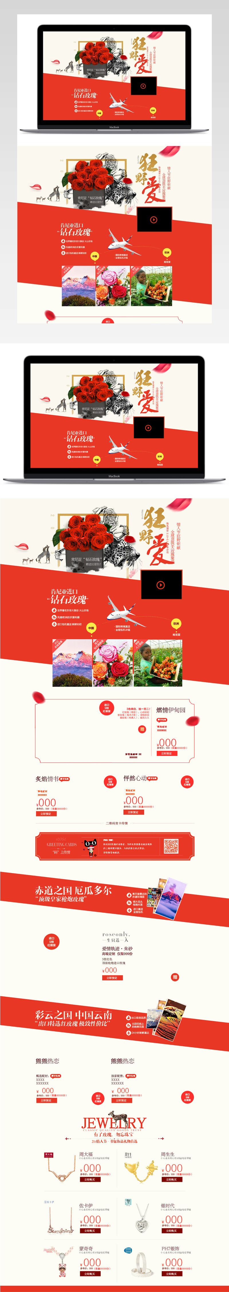 520表白节 表白节 214 七夕 七夕情人节首页模板 淘宝天猫214情人节首页装修全屏促销模板 狂野爱 红色白色拼接背景 玫瑰花 斑马 项链 吊坠 精美 礼物 情人节店铺