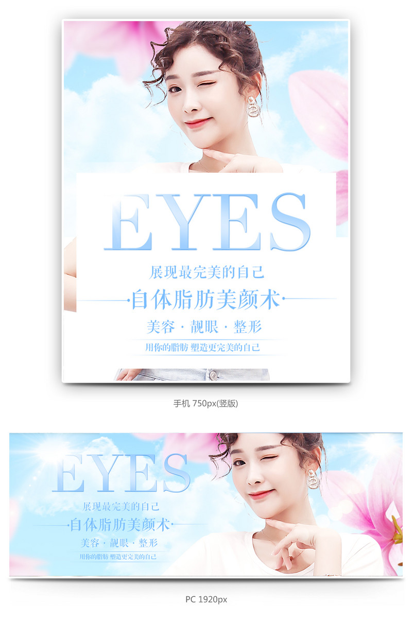 美容 整形 护肤品 首屏 海报 护肤品海报 化妆品 化妆品海报 海报背景 海报素材 海报设计 banner背景 banner设计 首屏海报 轮播图 banner 海报图 淡蓝色背景 蓝天白云 花朵 浪漫风 光感 梦幻 海报psd 玻尿酸 医美整形