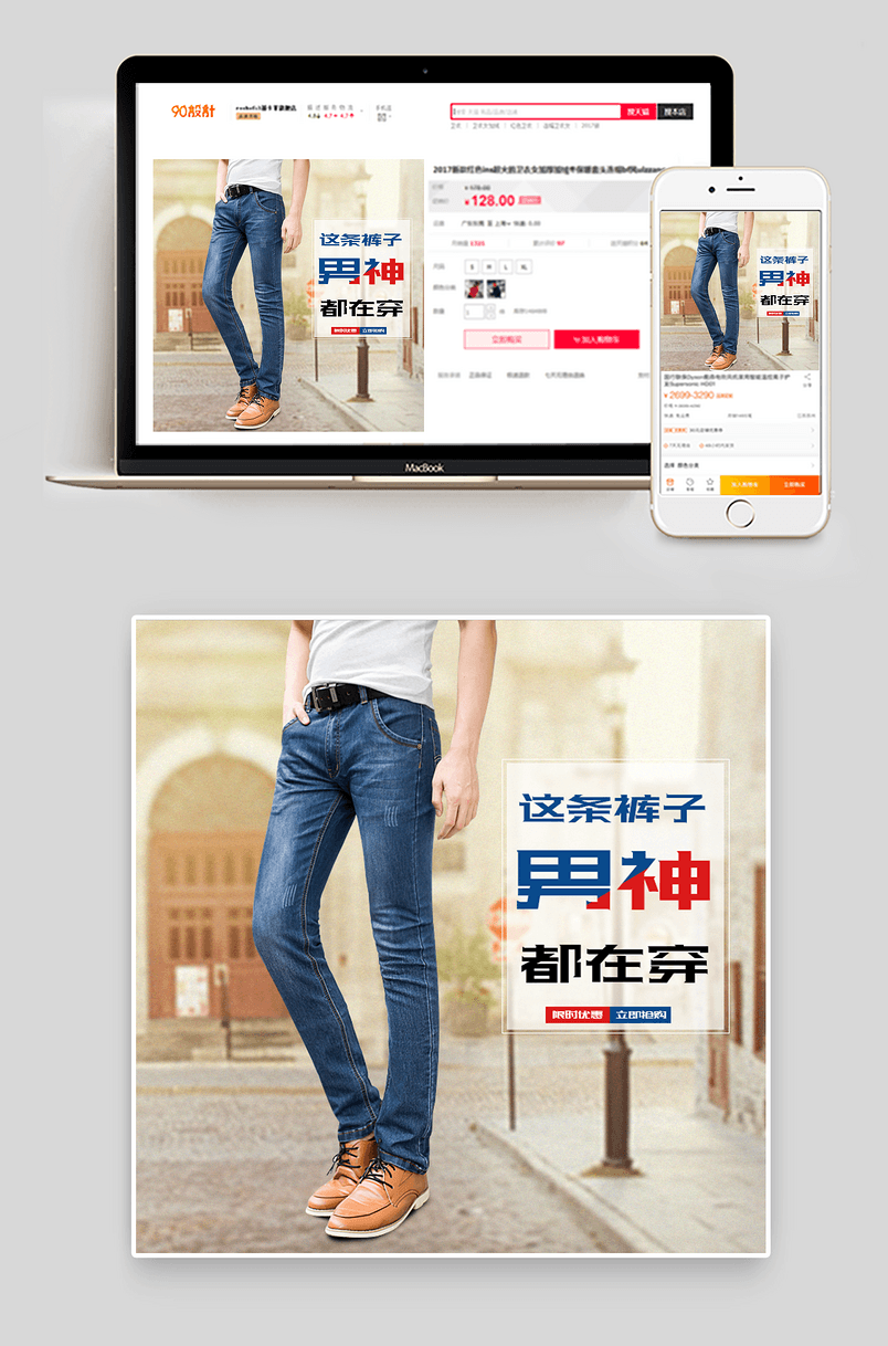 唯美风格男装牛仔裤主图psd模板