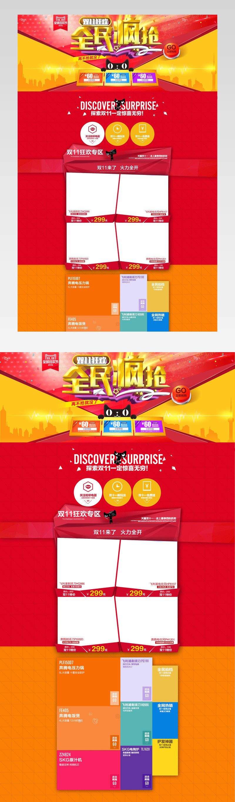 扁平红色天猫淘宝双11店铺首页psd文件