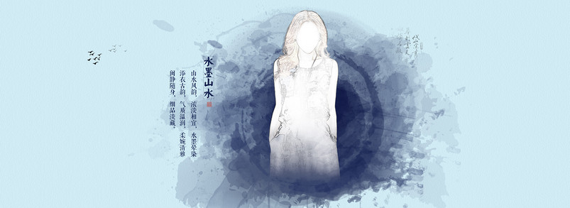 女装蓝色水墨全屏海报