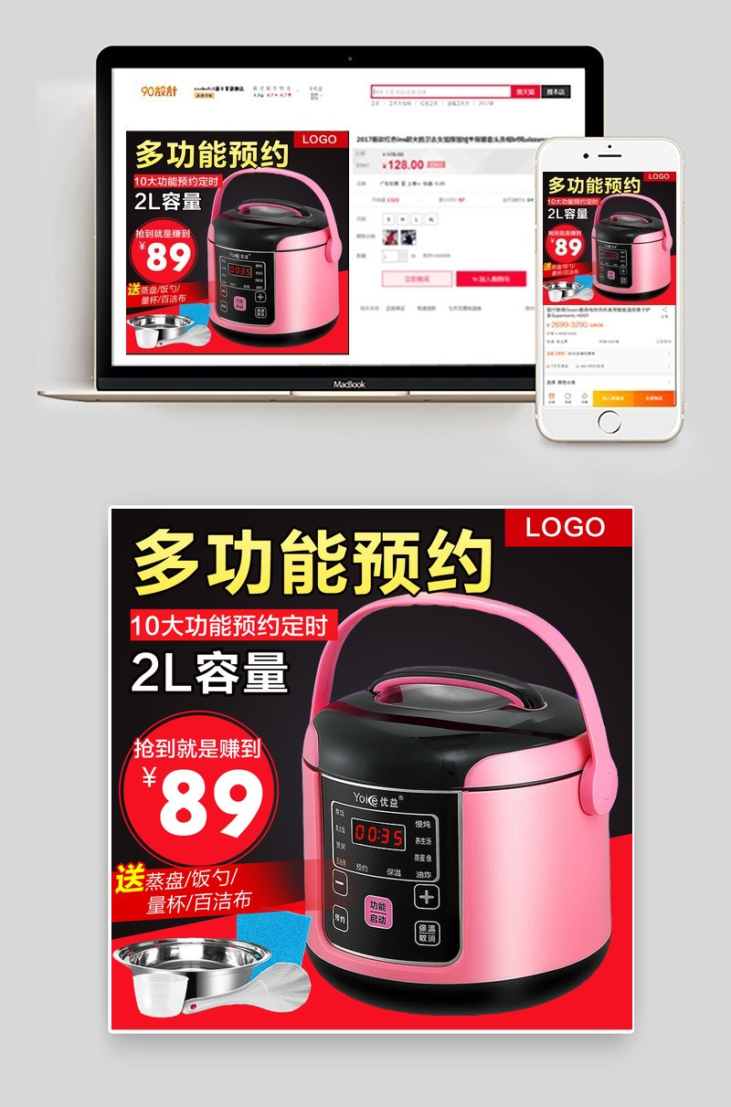 黑色时尚大气生活电器电饭煲主图直通车PSD模版