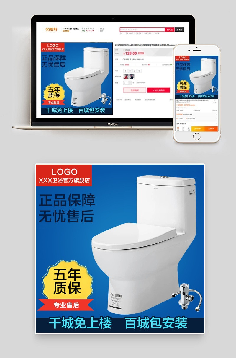 蓝色简约风家居建材马桶主图直通车PSD模版