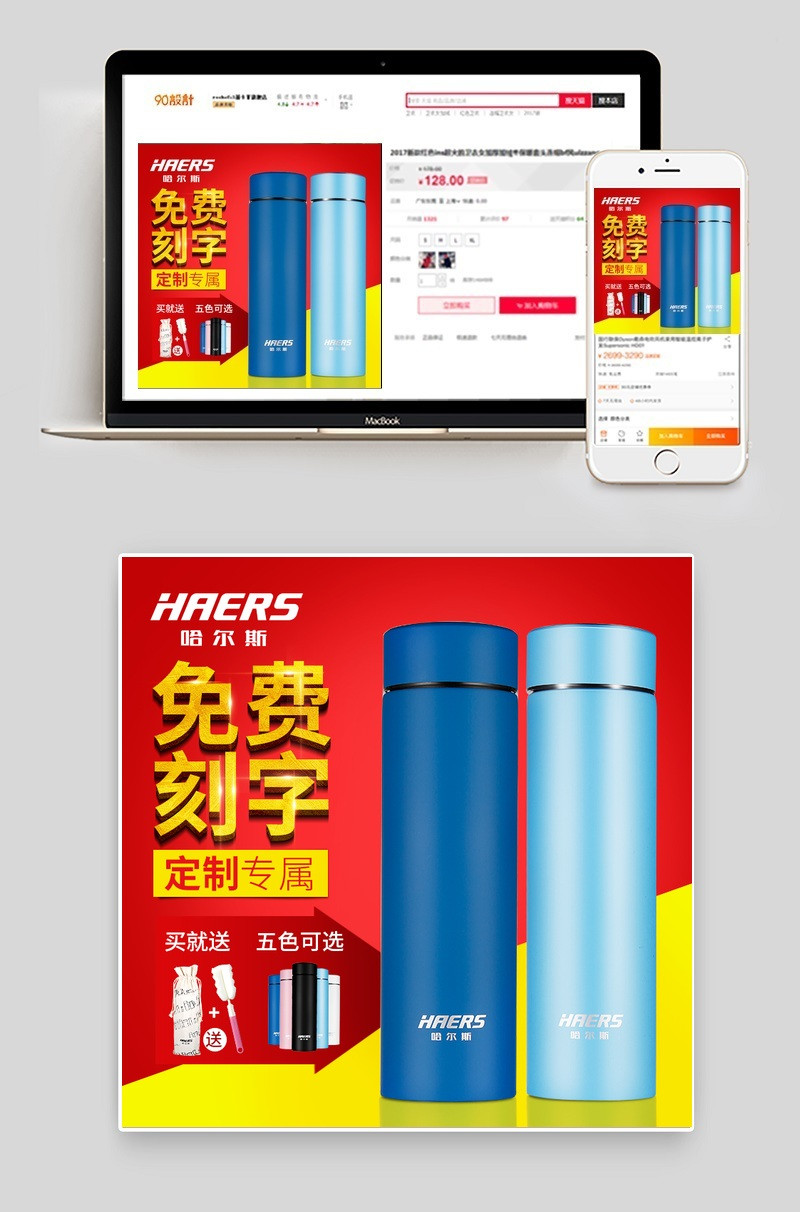 手机端:保温杯直通车图psd模板