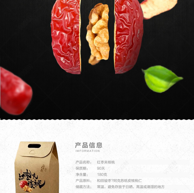 简约零食干果枣夹核桃详情页psd模板