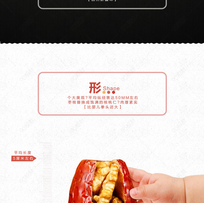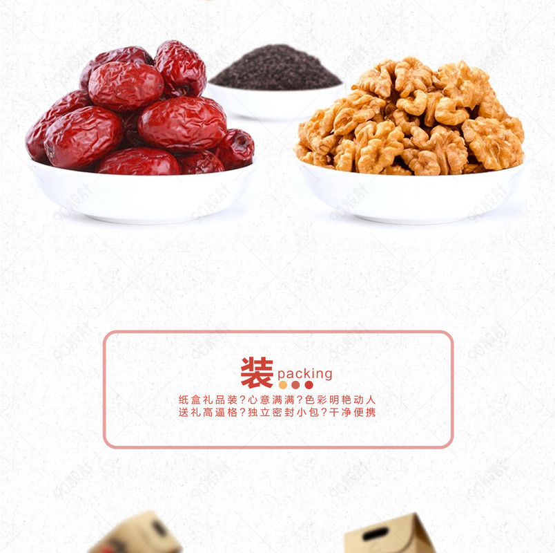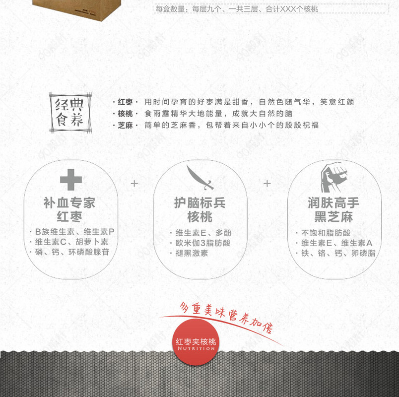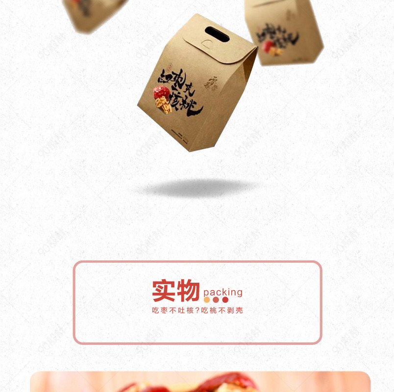 90设计提供简约零食干果枣夹核桃详情页psd模板设计素材下载,高清PSD格式。【通用】多类目可用,产品、模特均可替换。【PSD】精细分层,贴好片。【设计】由90设计师独家设计。点击右侧免费下载按钮可进行简约零食干果枣夹核桃详情页psd模板淘宝设计素材高速下载。